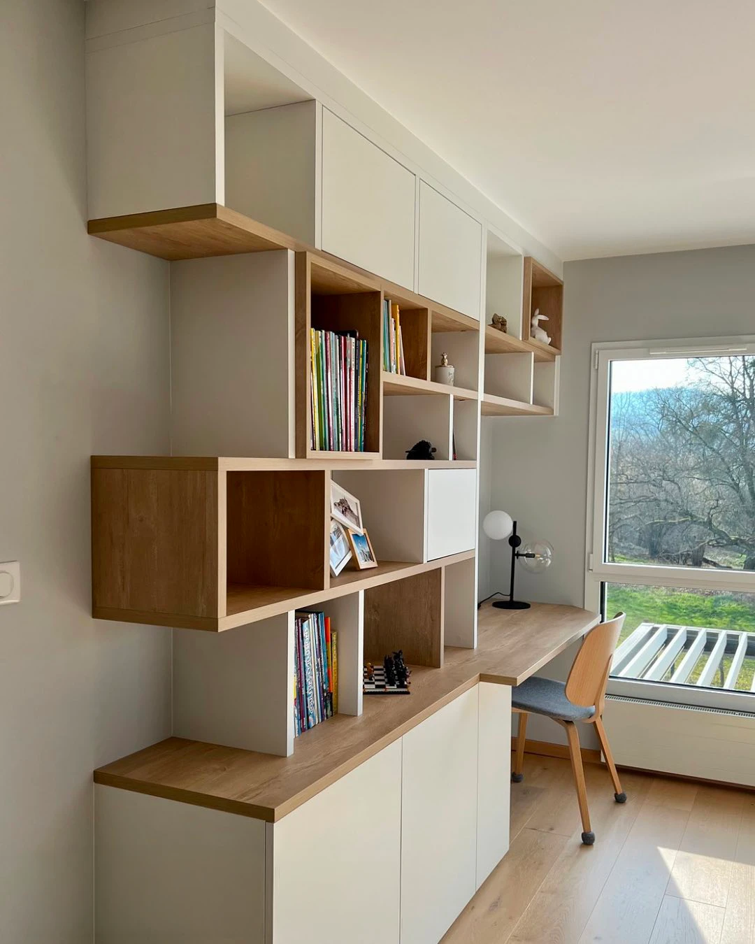 L'alliance idéale entre un espace de travail fonctionnel et un rangement bien organisé.